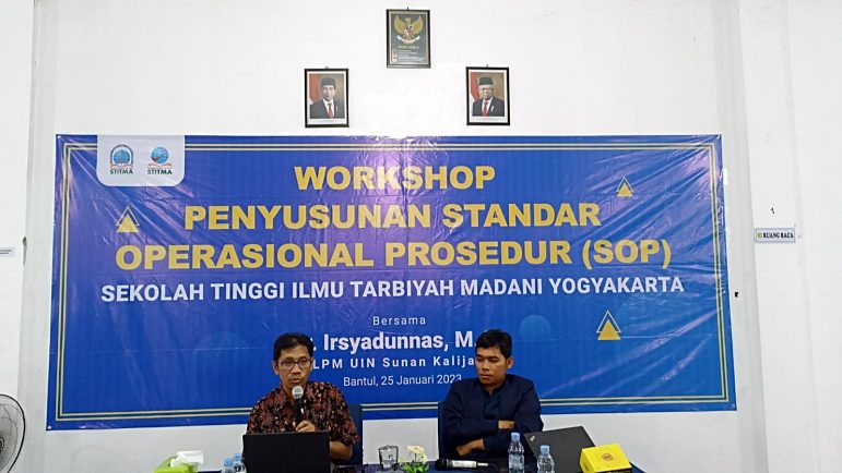 Sebayak 33 pejabat struktural Sekolah Tinggi Ilmu Tarbiyah Madani Yogyakarta mengikuti Workshop Penyusunan Operasional Prosedur (SOP) Rabu, 25 Januari 2023 di Gedung Pertemuan Lantai 3 Bin Baz 1, Jl. Wonosari KM 10, Piyungan, Sitimulyo, Karanggayam, Bantul, D.I. Yogyakarta.